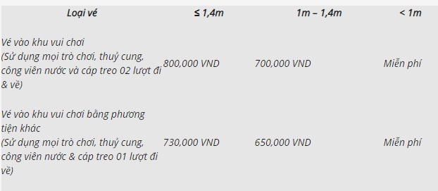 Giá vé khi vào khu vui chơi Vinpearl Land Nha Trang mới nhất: